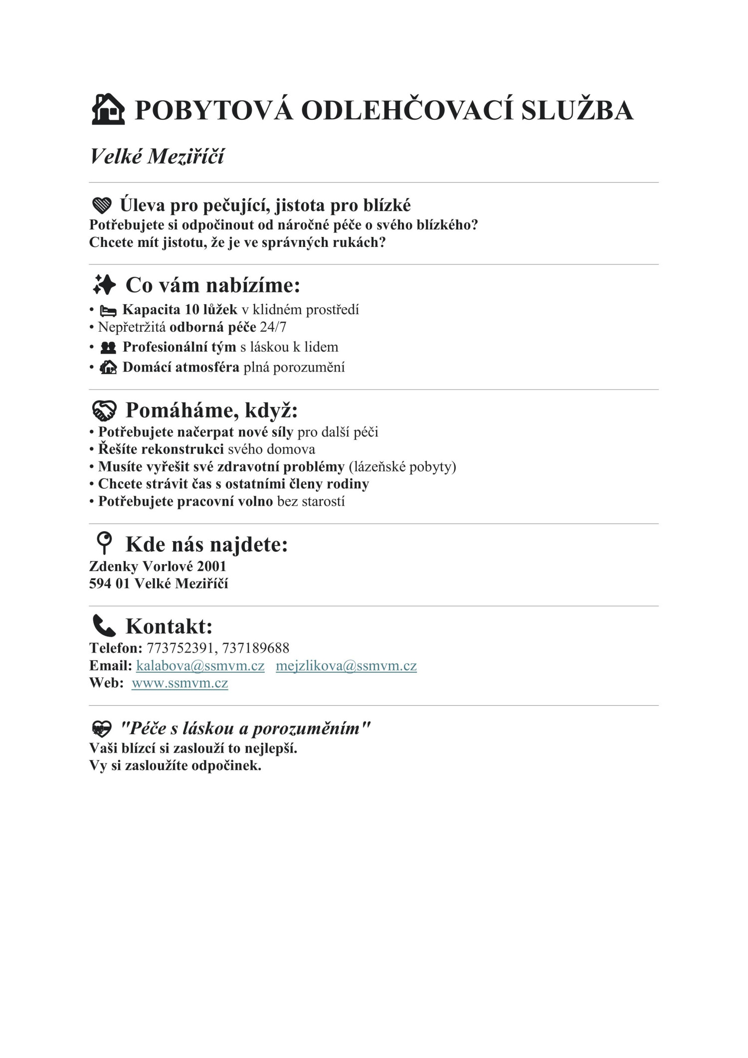 Pobytová odlehčovací služba Velké Meziříčí
